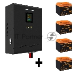 Комплект источника бесперебойного питания Exegate EX296005RUS + батарея 45Aч EX285666RUS 4шт (инвертор, синус, для котла, настенный) ExeGate FineSine SX-7000.LCD.AVR.2SH.T <7000VA/5000W, чистая синусоида, цветной LCD-дисплей, AVR, 2*Schuko+клеммы, линейно