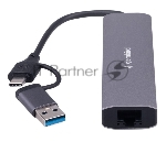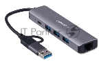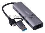 Концентратор USB Type-C + USB Gembird UHB-D7 5в1: 3хUSB3.1, Type-C, RJ45, кабель 17см, алюминий