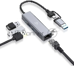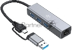 USB-концентратор Digma DHUB-LAN-4port, USB-C + USB-A, USB 3.0+USB 2.0, USB
