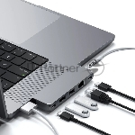 USB-концентратор Satechi Pro Hub Mini (2xUSB 3.0, USB Type-C, USB Type-C 4, RJ-45, Mini jack), Серый космос ST-UCPHMIM
