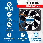 Вентилятор для корпуса 5bites FB8025S-12H3 черный, 80 x 80 мм, 3000 об/мин, 30 дБ, 3 pin