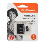 Флеш карта microSD GoPower 8Gb Class10 15 МБ/сек V10, адаптер в комплекте