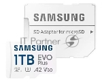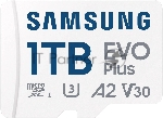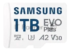 Флеш карта Samsung EVO Plus, microSDXC 1Tb, Class 10, A2, V30, UHS-I (U3), W 90 МБ/с, R 160 МБ/с, адаптер на SD