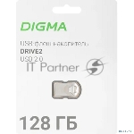 Флешка USB Digma DRIVE2 (DGFUM128A20SR), 128Gb, USB 2.0, R/W 20/10, серебристый