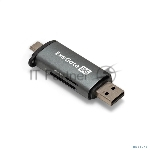 Кард-ридер ExeGate CR-201CA/серый/SDXC/SDHC/SD/microSDXC/microSDHC/microSD/USB Type-A/Type-C/алюминий