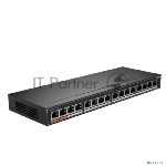 Коммутатор гигабитный 16-портовый неуправляемый Dahua DH-SG1016Pc PoE, 16xRJ45 1Gb PoE, суммарно 190Вт, коммутация 32 Гбит/с, MAC-таблица 8К, металл